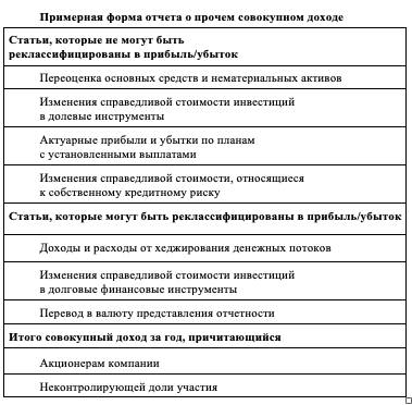 отчет о прибылях и убытках и прочем совокупном доходе;