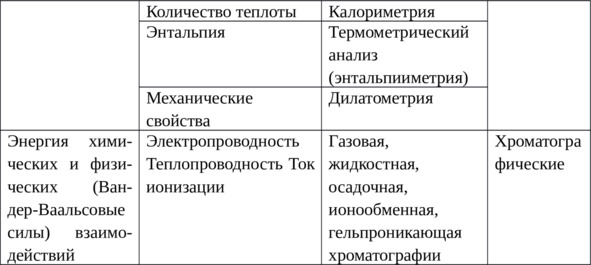 Кроме перечисленных в таблице существует множество других частных физико-химических методов анализа, не подпадающих под данную классификацию.