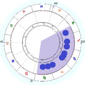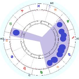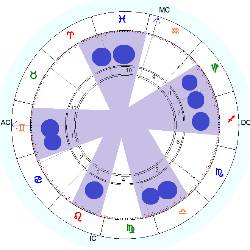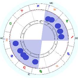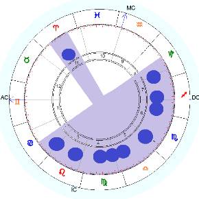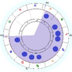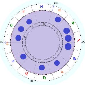 Всплеск или брызги – эта фигура, в которой планеты равномерно распределены по всему гороскопу, а расстояние между планетами не превышает 60-80°.