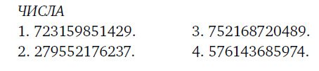 Задание 3. Вам необходимо постараться запомнить все четыре 12-значных числа. Время на подготовку 3 минуты. Затем на странице в разделе «Ответы на проверочные задания» следует по памяти написать эти числа.
