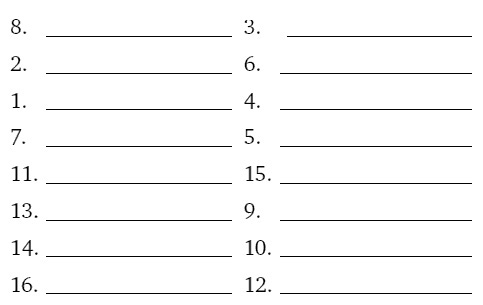 Теперь подсчитайте заработанные баллы следующим образом. За каждое правильно вспомненное слово под нужным номером начислите себе 1 балл. В случае, если вы забыли или вспомнили нужное слово, но указали не тот порядковый номер, под которым оно числилось в задании 1, то баллы не засчитываются. Максимально возможный результат – 16 баллов.