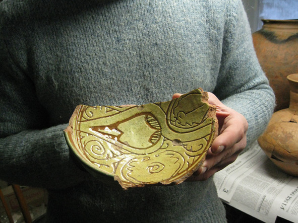С первыми находками (это были кусочки керамики и так называемые «печины» – кусочки старинной керамической печи) разъяснилось предназначение дырчатых лотков – археологи попросту складывали в них найденные предметы.