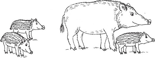 Маленького каждый может обидеть, но кабаненок с полосатого возраста учится отвечать – хотя бы визжать в ответ противным голосом и, ощетинившись, разевать пасть, изображая ответный выпад. В постоянных стычках закаляется характер кабана.
