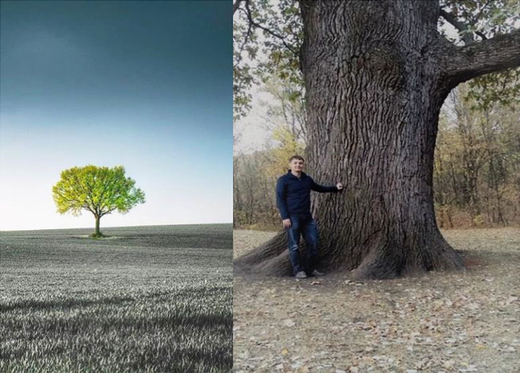 Рис. 7. Дерево с листвой вдали от нас и рядом