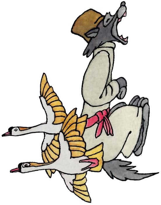 Уселся волк, поднял морду и завыл протяжно. Воет, воет, а гуси между тем крыльями захлопали да и улетели.