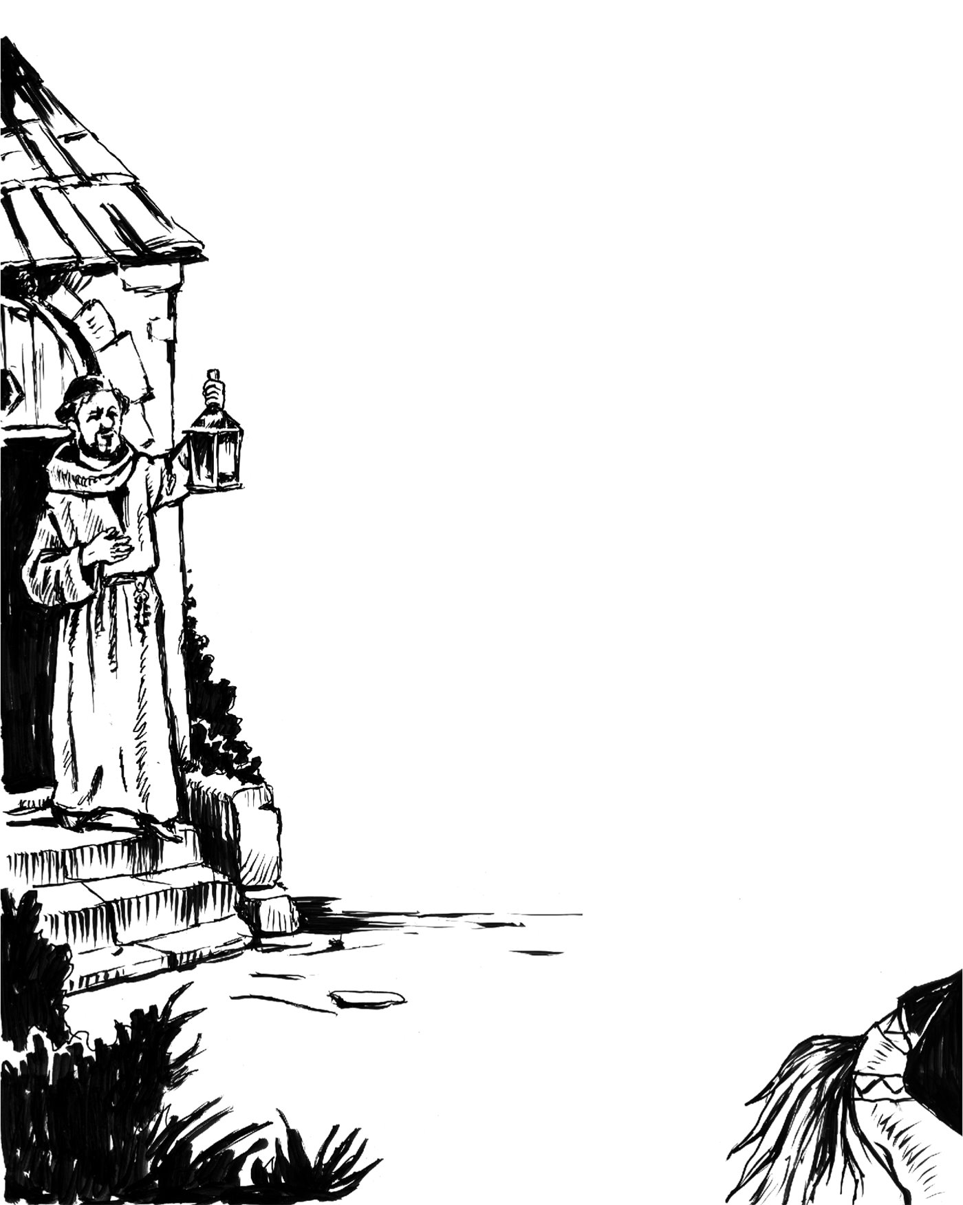 Ay işığı yaşıl ağacların arasından düşüb kiçik kilsəni işıqlandırırdı. Meşə sükuta qərq olmuşdu. Birdən ağacların arasından ucaboy bir kişi çıxdı. O, yan-yörəsinə ehtiyatla baxa-baxa kilsəyə tərəf gəldi. Daş pillələrlə qalxıb ağır qapını açarla açdı. İçəri daxil olub şamları təzəcə yandırmışdı ki, qapı astadan döyüldü.