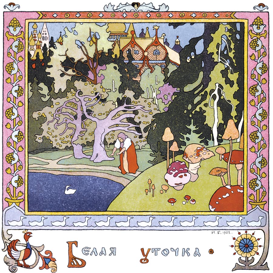 Поутру белая уточка зовёт деток, детки нейдут. Зачуяло её сердце, встрепенулась она и полетела на княжий двор.
