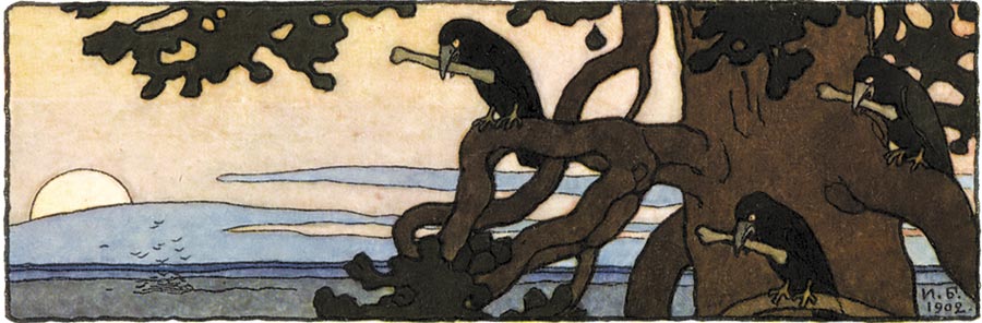 Тотчас поймали сороку, подвязали ей два пузырька, велели в один набрать воды живящей, в другой – говорящей. Сорока слетала, принесла воды. Сбрызнули деток живящей водой – они встрепенулись, сбрызнули говорящей – они заговорили.
