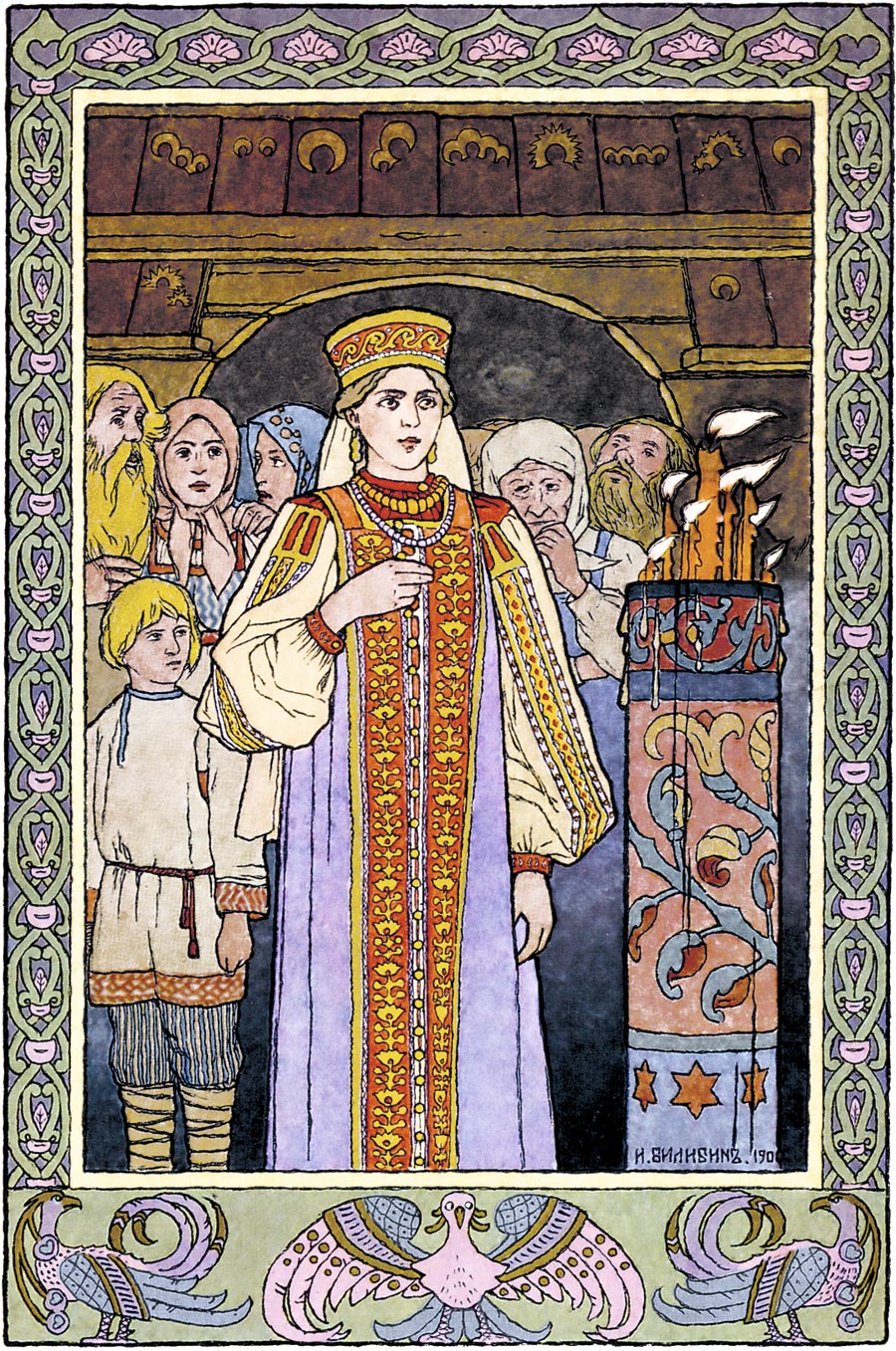 Все бояре и князья думали-думали и в один голос порешили: быть ему с тою женой, что его выкупала.