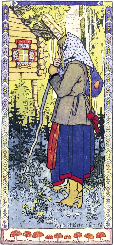 – Фу, фу, фу! – говорит Баба-яга. – Прежде тут русского духу видом было не видать, слыхом не слыхать, а нынче русский дух по вольному свету шатается, воочию является, в нос бросается! Куда путь держишь, красна девица? Долю пытаешь аль от дела лытаешь?