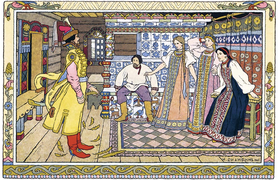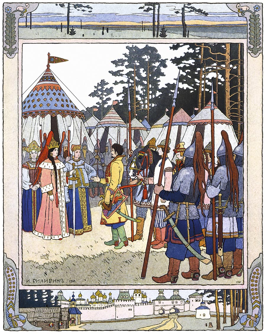 Пустился Иван-царевич дальше, наезжал на шатры белые, выходила к нему навстречу Марья Моревна, прекрасная королевна.