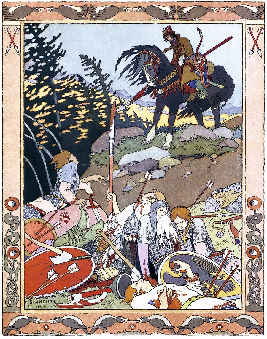 Собрался в дорогу, шёл, шёл и видит – лежит в поле рать-сила побитая.