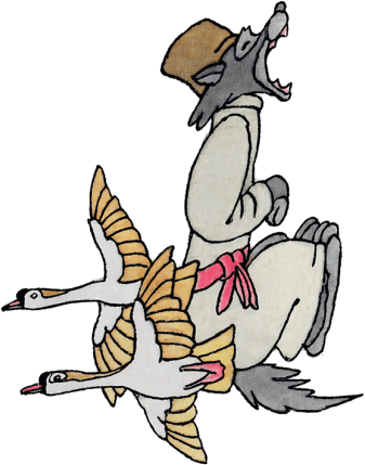Уселся волк, поднял морду и завыл протяжно. Воет, воет, а гуси между тем крыльями захлопали да и улетели.