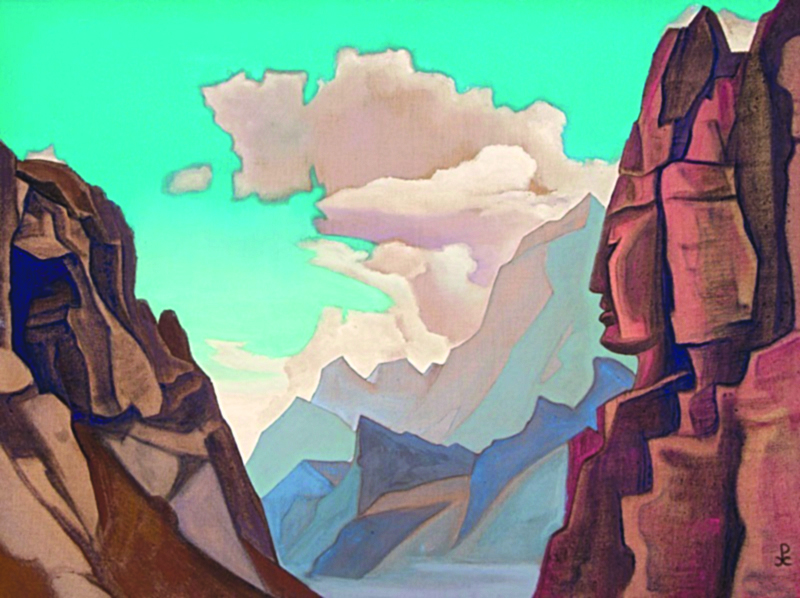 Обратите внимание на вход внутрь скалы, показанный на картине «Лик Гималаев» и являющийся, возможно, началом подземного хода. Среди тех, кому в прошлые столетия посчастливилось побывать в Ашрамах Белого Братства, вероятно, были и такие, кто проходил по этим подземным лабиринтам с проводником, пришедшим из обители.