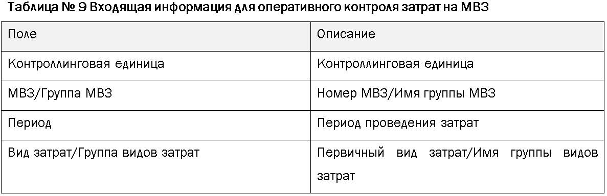 Оперативный контроль затрат на МВЗ (U3.02.10)
