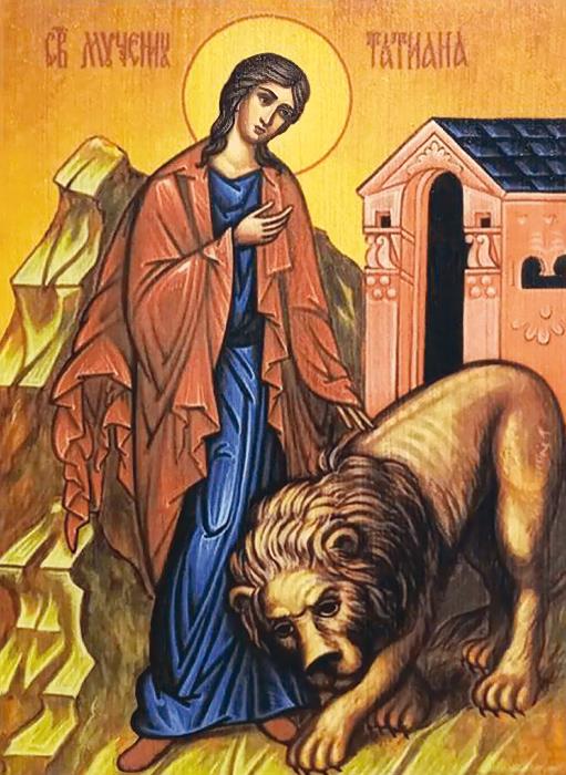 Святая Татиана родилась в знатной римской семье. Ее отец, тайный христианин, трижды избирался консулом и воспитал дочь в преданности Богу. Став взрослой, Татиана отказалась от супружеской жизни. Ее поставили в диаконисы в одном из римских храмов, и отныне всю свою жизнь она посвятила молитве и милосердию: ухаживала за больными, посещала темницы, помогала бедным.
