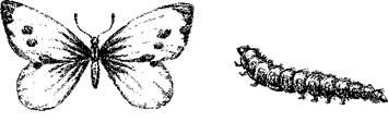 Рис. 5. Капустная белянка (гусеница, бабочка)