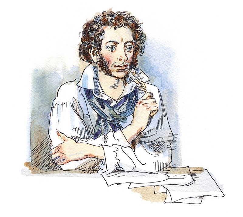 В детстве Александр Пушкин был кудрявым голубоглазым мальчиком. Толстый и неповоротливый, он не любил играть, бегать и прыгать. Он любил читать книги, которых в доме было много. Александр читал не только русские книги, но и французские, потому что с малых лет изучал французский язык и знал его превосходно.