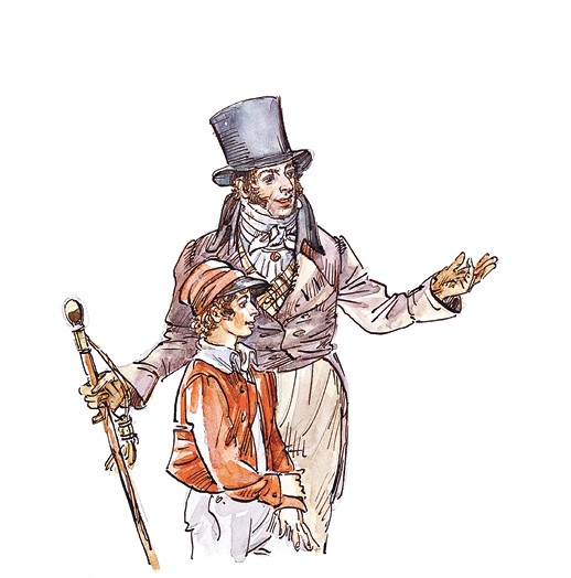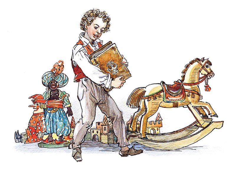 Маленького Пушкина водил гулять его слуга, крепостной Никита (в то время дворянам – а Пушкины были дворянами – принадлежали земли, усадьбы, дома и крепостные крестьяне). В Кремле Александр с Никитой поднимался на высокую колокольню Ивана Великого и с высоты смотрел вниз на людей, лошадей, запряжённых в кареты, яркие расписные сани (если это было зимой) и на дома, деревья, реку. А когда будущий поэт шёл по улицам, то прислушивался к речи простого народа – это ему пригодилось потом, когда он сочинял свои произведения.