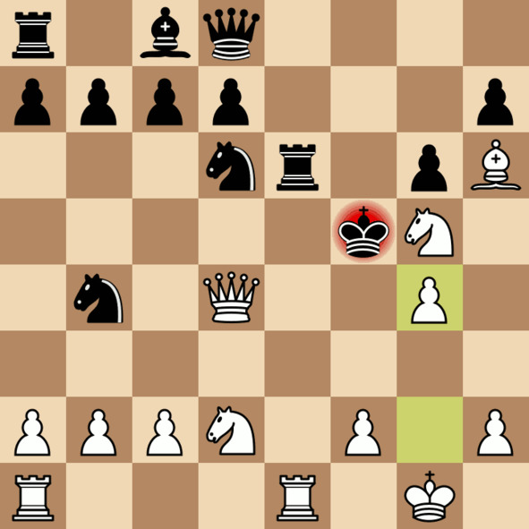 1. e4 e52. d4 Nc63. d5 Nce74. Nf3 Ng65. h4 Nf66. h5 Nf47. Nxe5 N4h58. Rxh5 Nh59. Qxh5 d610. Qxf7#Конец ознакомительного фрагмента.