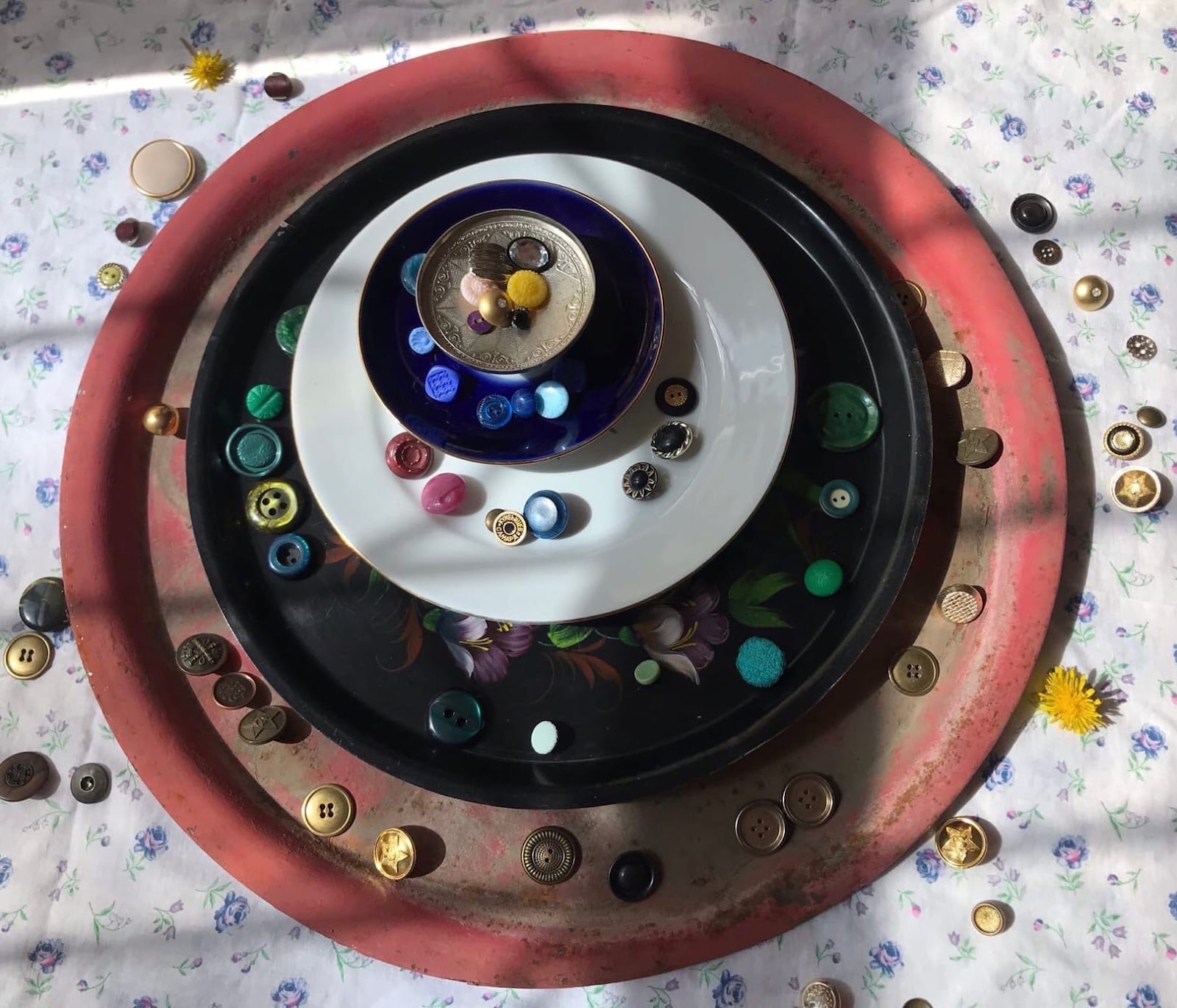Следующий круг, на фото он на черном жостовском подносе – поддержание контакта (2-й). В нем: соседи, люди из соцсетей, сотрудники, с которыми нет тесного взаимодействия. С людьми из этого круга мы можем никогда больше не встретиться, и это нас не расстроит, не озаботит. Есть такая фраза, характеризующая, на мой взгляд, контакты именно с этим кругом: “Очень много людей твоего прошлого знают ту версию тебя, которой уже не существует”.