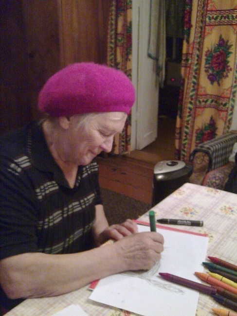 Примерно через месяц моя однокурсница разместила на своей страничке в социальной сети фотографии, которые красноречиво иллюстрировали результаты этих проб. Это та самая бабушка и её рисунки. (напоминаю: разрешение использовать её замечательные снимки я получила).