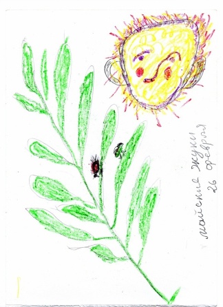 Нет на рисунке ни домика, ни солнышка, ни человечка – ничего конкретного и определённого. Если предположить, что у Инны в данный период жизни «каша в голове», сумбур, неопределённость – бывает же такое, то дочь строго, след в след шла по маминому рисунку. Послушная, исполнительная, заботливая, но для её образов на бумаге не хватило места, всё пространство заняло мамино изображение непонятно чего.