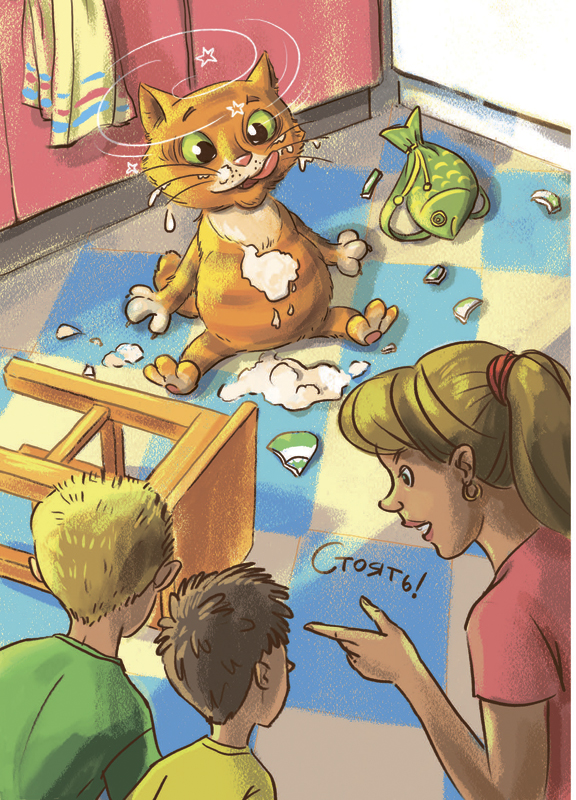 Таких жестоких слов от мамы никто не ожидал. Папа удивлённо поднял брови. Толик и Павлик скривили лица, приготовившись реветь. Котоваська часто-часто заморгал и низко опустил голову.