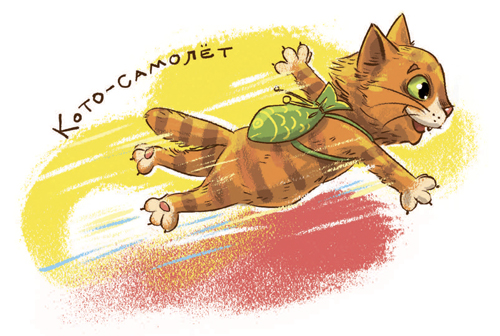 Лошадь резко остановилась, и Котоваська, разжав лапы, полетел вперёд. В воздухе с расправленными лапами он уже был похож не на кото-флаг, а на кото-самолёт. Летел кото-самолёт красиво, но недолго.