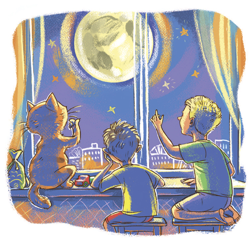 Однажды вечером он вместе с детьми сидел на кухне у окна и смотрел на луну. Из комнаты доносились звуки телевизора – родители отдыхали. Котоваська устроился прямо на подоконнике. Павлик с Толиком забрались на табуретки.