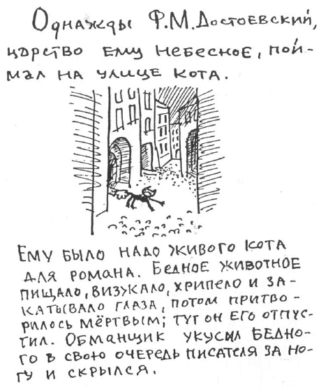 «Федор Михайлович Достоевский хотел научиться показывать карточные фокусы и репетировал перед женой, пока несчастная женщина не потеряла терпение и не крикнула мужу: – Идиот! – подсказав тем самым сюжет знаменитого романа».
