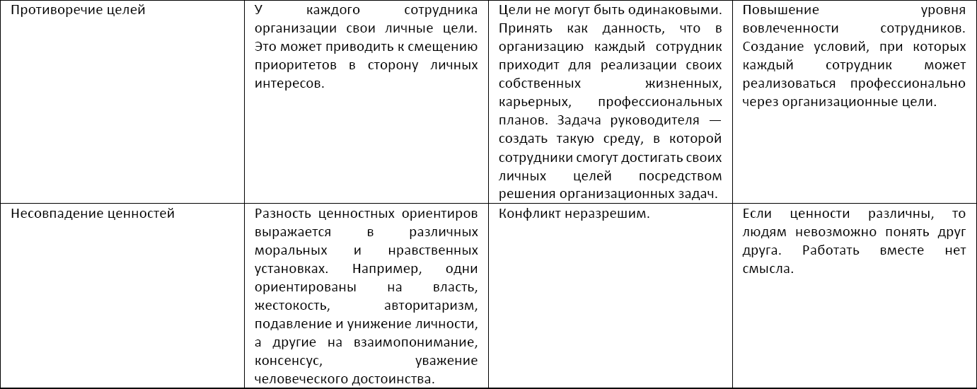 Имя автора не установленоКак мы установили в ходе проблемно-целевого анализа, конфликты между сотрудниками отдела являются одной из причин недостижения проектных показателей. Мы обсудили с руководителем-стажером, что разногласия неизбежны в любом коллективе. Важным является то, что не все столкновения мнений вредны. Конструктивные конфликты полезны, так как они позволяют найти решения в нестандартных ситуациях. Деструктивные конфликты опасны, так как они несут мощную разрушительную энергию и не способствуют поиску выхода из возникших обстоятельств, в результате которых возникло данное противоречие. Компания, которая тратит время на деструктивные конфликты, обречена на провал. Но и избегать конфликтов нельзя, ожидая, что размолвки как-то сами собой прекратятся. Руководителю необходимо научиться эффективно разрешать все возникающие в коллективе разногласия.