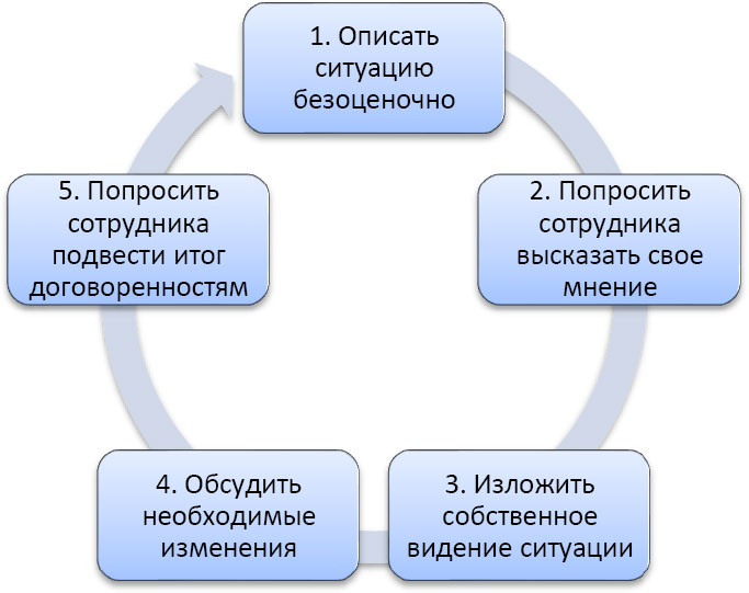 Soft skill «Предоставление обратной связи подчиненным»В управлении термин «обратная связь» означает передачу информации подчиненному с целью изменения его поведения. Задача руководителя – добиваться результатов «руками» подчиненных, подобрав нужный инструмент к каждому. Поэтому представленные ниже алгоритмы обратной связи нельзя эксплуатировать как универсальные на все случаи жизни. Это примеры, которые могут быть использованы руководителем в работе. Но нужно помнить, что эффективных методик, позволяющих руководителю полностью отключить мышление и действовать «по скрипту», не существует. «Мягкие навыки» предполагают умение чувствовать нюансы, намеки, слабые сигналы, тонкие грани между факторами, влияющими на поведение людей. Уроки для развития своих soft skills можно извлекать из любых жизненных ситуаций, а также из кино, из литературы.