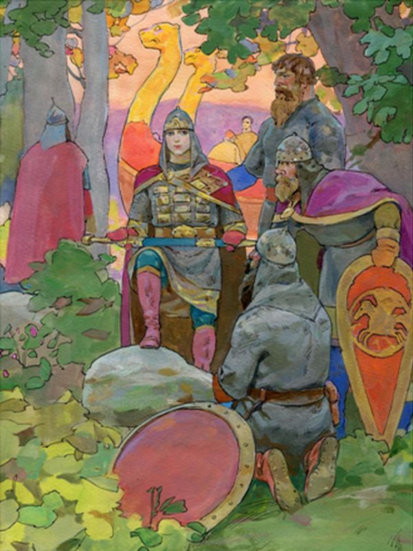 Владимир смутился. И впрямь, ложась спать, он беспечно кинул в траву пояс с мечом и даже не заметил куда. Неповадно князю так поступать, срамясь перед дружинниками!
