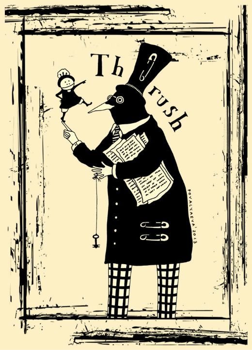Внутри чудища обнаружилась комната, обшитая дубовыми панелями и устланная ковром с длиннющим ворсом, в котором, словно в океанских глубинах, безвозвратно тонул всякий звук. Посреди комнаты стоял массивный стол с зажженной керосиновой лампой и письменным прибором, а у стола – стул с длинной зубчатой спинкой в средневековом стиле. В дальнем конце комнаты, за тяжелыми бархатными драпировками, угадывалась дверь. Как только Джонни ее приметил, дверь отворилась, и в комнату бесшумно вошел дрозд, одетый в цилиндр и строгий, наглухо застегнутый сюртук. Подмышкой дрозд нес мелко исписанные листки писчей бумаги.