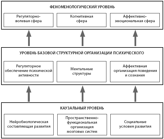 Базовая структурная организация психического развития, с одной стороны, определяется нейробиологическими, функциональными и социальными причинами, с другой, – сама является в определенной степени причиной (базой, «каркасом»), изоморфно представленной в соответствующих психических феноменах.