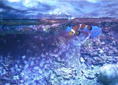 Вы, наверно, думаете, что они живут в Красавице Актинии, как это было в мультфильме? А вот и нет. Клоуны мои с техническим уклоном – выбрали себе «домом» (а правильнее было бы сказать – «базой») трубу, по которой в аквариум очищенная вода поступает, и за ней ютятся, хвостиками дружно машут, нежно бочками соприкасаются…