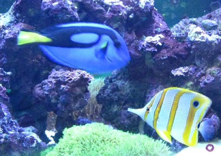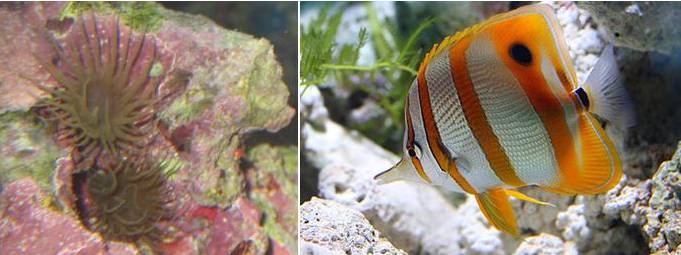 Вскоре Месье Оцеллярис был снова водворен в общий аквариум! Вы думаете, что просидев около двух недель без кормежки, в заросшей страшными кусачими анемонами «темнице», он был тощ, потрепан и смущен? Абсолютно нет! Он был хорошо откормлен и бодр, как никогда! Первым делом он подплыл к своей супруге и дважды куснул ее за полосатый бочок (наверно, это был примерный эквивалент «Я, значит, в командировке маюсь, а ты тут молодых приваживаешь???!!!»). Новичок же радостно завопил: «Мадам, так что ж Вы мне сразу не сказали, что у нас тут СТАЯ????» и принялся храбро рассекать воду рядом, уже абсолютно игнорируя все остальное население, и даже Хулиган Синенький, проплывая мимо, больше не смел на него рявкать…!