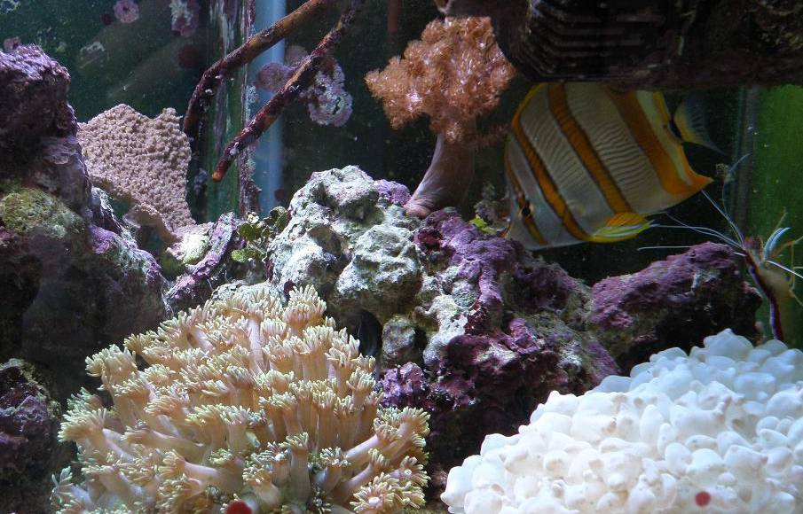 Несколько небольших коралловых кустиков, которые я после кропотливого подбора влияния течения воды, света, выставила на дне в определенных местах, для получения оптимальных условий роста и процветания – оказались беспощадно раскиданы по всему аквариумному пейзажу.
