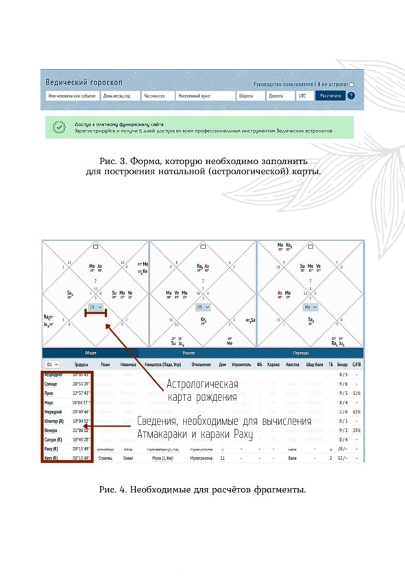 Чтобы построить свою индивидуальную астрологическую карту, используйте доступные вам астрологические программы и/или ресурсы в сети Интернет. Я рекомендую использовать этот сайт Все карты, приведённые в качестве примеров в данной книге, построены мною с его помощью. https://vedic-horo.ru/