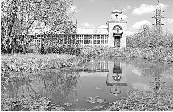 Дача Безобразовых. Южный фасад. Остатки пейзажного парка с прудом. Фото О. Еверзова. 2017 г.