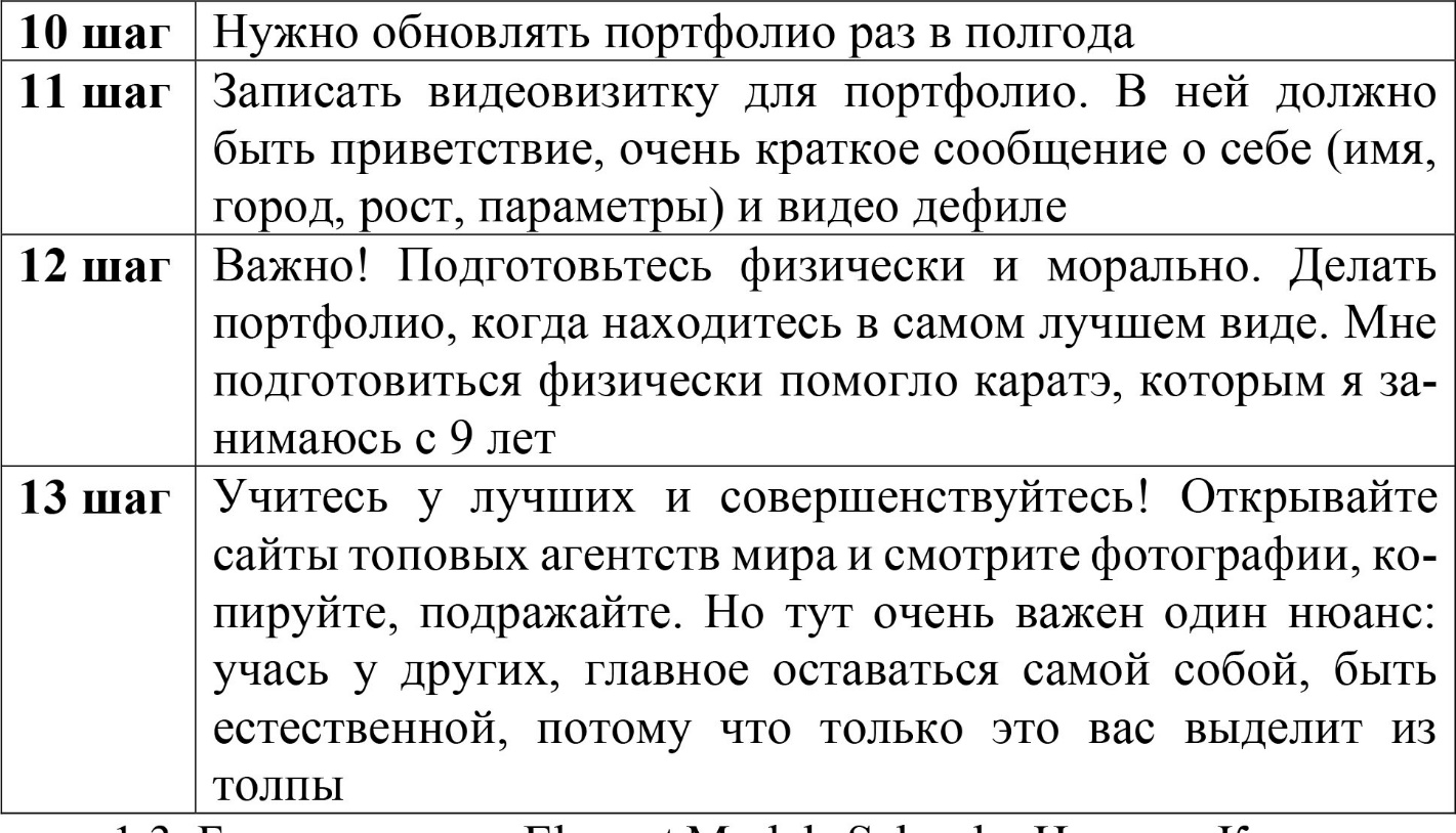 Таблица 1 – 13 шагов для создания крутого портфолио модели