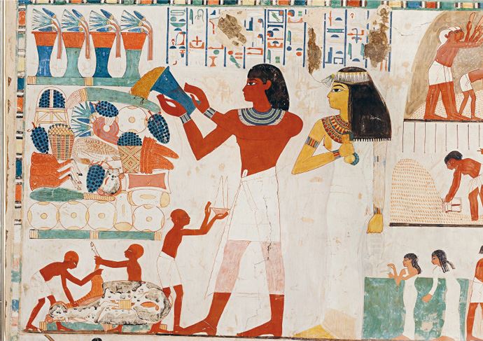 Заметьте, как красиво контрастирует белая набедренная повязка с коричнево-красным цветом мужского тела в произведениях египетской живописи: каноны древнего искусства предписывали этот цвет для изображения мужских фигур, а женщины (и рабы!) изображались с кожей желтого цвета.