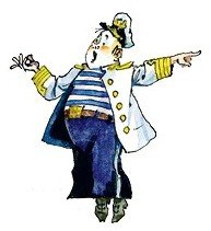 Вместо скромного отставного аптекаря за столом, углубившись в чтение какой-то древней книги, сидел грозный капитан в полной парадной форме, с золотыми нашивками на рукавах. Он свирепо грыз огромную прокуренную трубку, о пенсне и помину не было, а седые растрёпанные волосы клочьями торчали во все стороны. Даже нос, хотя он действительно и покраснел, стал у Врунгеля как-то солиднее и всеми своими движениями выражал решительность и отвагу.