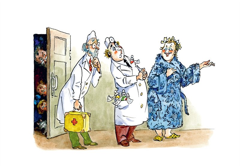 Соседка услышала, заглянула, видит: здоровый детина сидит, кричит «ай».