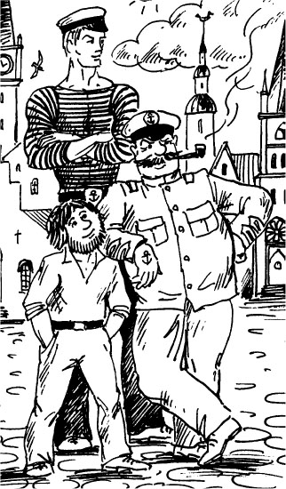 Вместо скромного отставного аптекаря за столом, углубившись в чтение какой-то древней книги, сидел грозный капитан в полной парадной форме, с золотыми нашивками на рукавах. Он свирепо грыз огромную прокуренную трубку, о пенсне и помину не было, а седые, растрепанные волосы клочьями торчали во все стороны. Даже нос, хотя он действительно и покраснел, стал у Врунгеля как-то солиднее и всеми своими движениями выражал решительность и отвагу.
