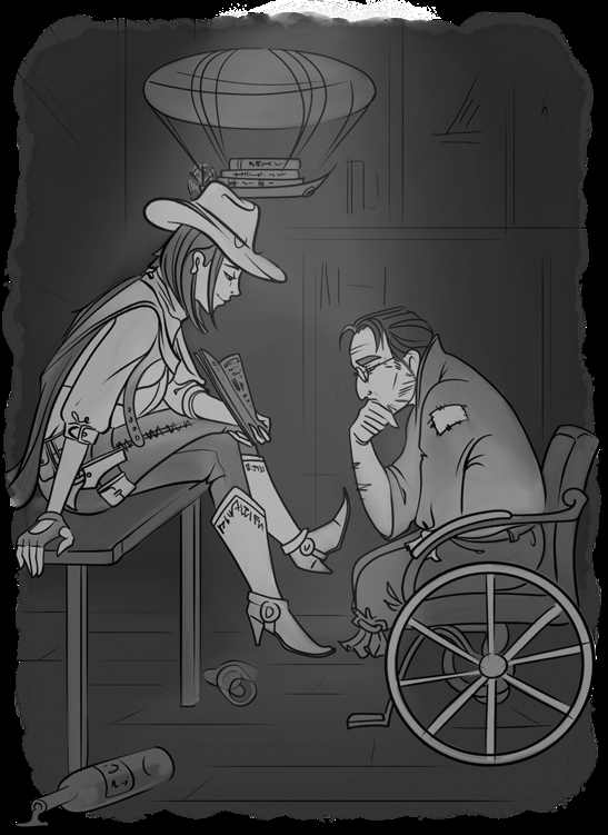 Я улыбнулась. Он тоже растянул губы, покрытые характерными для любителей местной крепкой браги струпьями. Зубы покинули свое пристанище не иначе как для того, чтобы самостоятельно найти себе щетку, но не преуспели и сгинули в пустошах. Правый же механический глаз покинул своего хозяина не по своей воле – его заложили в ломбард давно, скорее всего уже обанкротившийся. И подручный хлам, изображавший из себя протез, останется, где есть навсегда. К счастью, левый глаз еще держался, и очень надеюсь, его та же судьба не постигнет, хотя парная механика и ценится выше.