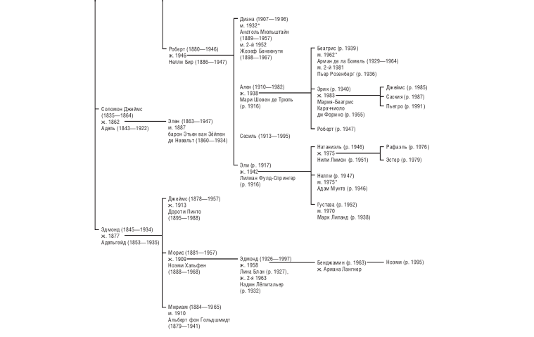 Главной темой данной книги, таким образом, стала необходимость объяснить истоки и развитие одного из крупнейших и самых необычных предприятий в истории современного капитализма. И все же не следует считать ее лишь пособием по истории экономики. Во-первых, история фирмы неотделима от истории семьи: выражение «Дом Ротшильдов», которое часто употребляли историки (и кинорежиссеры) прошлых поколений, использовалось современниками, в том числе самими Ротшильдами, для того, чтобы подчеркнуть их единство. В то время как регулярно пересматриваемые и обновляемые договоры о сотрудничестве регулировали управление сферами коллективной деятельности Ротшильдов и распределение накопленных прибылей, не меньшим значением для семьи обладали брачные договоры. В период своего расцвета Ротшильды систематически заключали внутрисемейные браки, не допуская, таким образом, распыления капитала и спасая его от притязаний «чужаков». Если женщины из семьи Ротшильд все же выходили замуж не за представителей семьи, их мужьям запрещалось напрямую участвовать в семейном бизнесе, как и самим женщинам-Ротшильдам. Завещания партнеров также обеспечивали сохранение и рост бизнеса путем наложения завещаний одного поколения на следующее. Неизбежно возникали противоречия между коллективными притязаниями семьи, так недвусмысленно выраженными Майером Амшелем перед смертью, и пожеланиями отдельных ее представителей: им повезло родиться Ротшильдами, однако многие из них не унаследовали ненасытного аппетита основателя династии к работе и прибылям. Сыновья разочаровывали отцов. Братья презирали братьев. Кто-то любил без взаимности; кому-то запрещали выходить замуж за избранника или жениться на любимой. Вынуждали сочетаться браком не желающих того кузенов; мужья и жены ссорились. Во всем этом у Ротшильдов много общего с большими семьями, которые населяют многочисленные романы XIX и начала XX в.: с Ньюкомами Теккерея, Паллисьерами Троллопа, Форсайтами Голсуорси, Ростовыми Толстого и Будденброками Манна (хотя, к счастью, не с Карамазовыми Достоевского!). Конечно, XIX в. можно назвать эпохой больших семей – рождаемость была высокой, а смертность в богатых семьях падала, – и, может быть, только в этом смысле Ротшильды не были «исключительной семьей», как их однажды назвал Гейне.