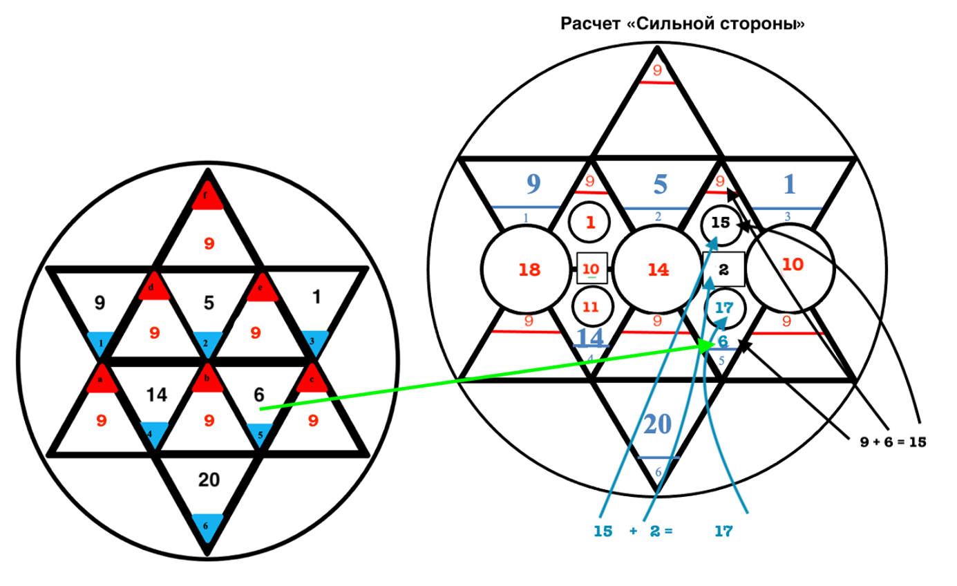 1. Берем 5-й треугольник (6) и + с архетипом года (9), и получаем (15) это то (что дает энергию).
