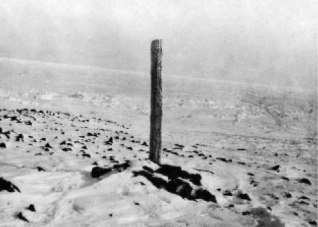 Обломок флагштока из бамбука, на котором был поднят русский флаг на мысе Берга Земли Императора Николая II. Фотография, сделанная Н. Н. Урванцевым по просьбе А. М. Лаврова в 1931 г.